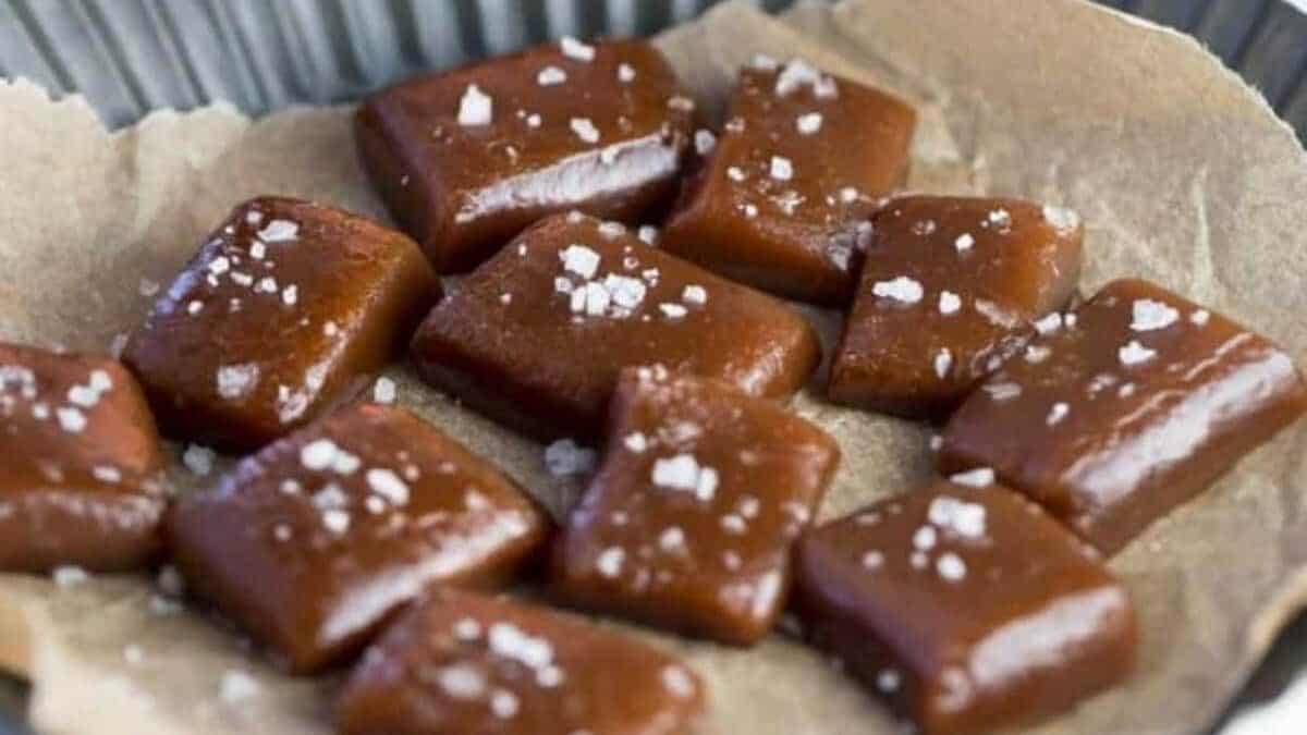 Salted Whiskey Caramels Recipe takes classic caramel to a whole new level with the addition of maple flavoring, whisky, and finishing salt.