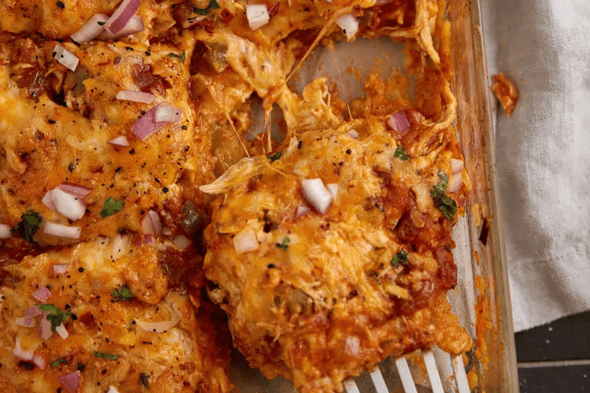 Chicken Enchilada Layered Casserole (With Homemade Sauce)