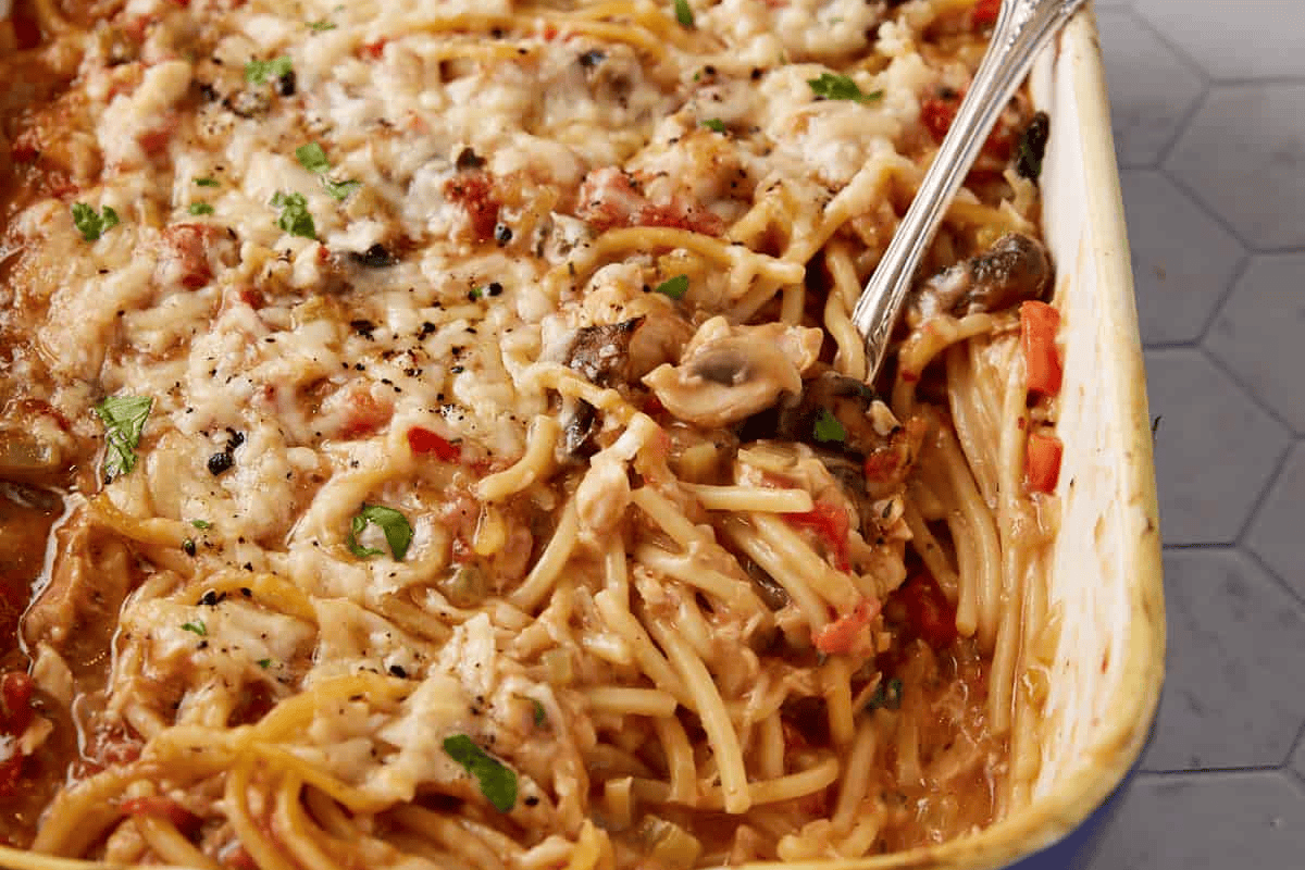 Creamy Chicken Tetrazzini Recipe with Rotisserie Chicken