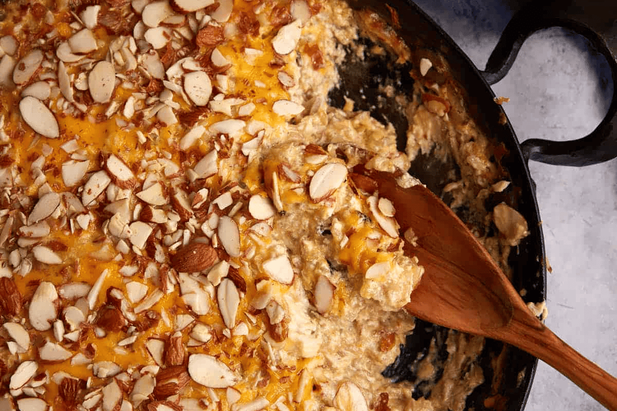 Cheesy Chicken and Wild Rice Casserole Topped with Toasted Almonds