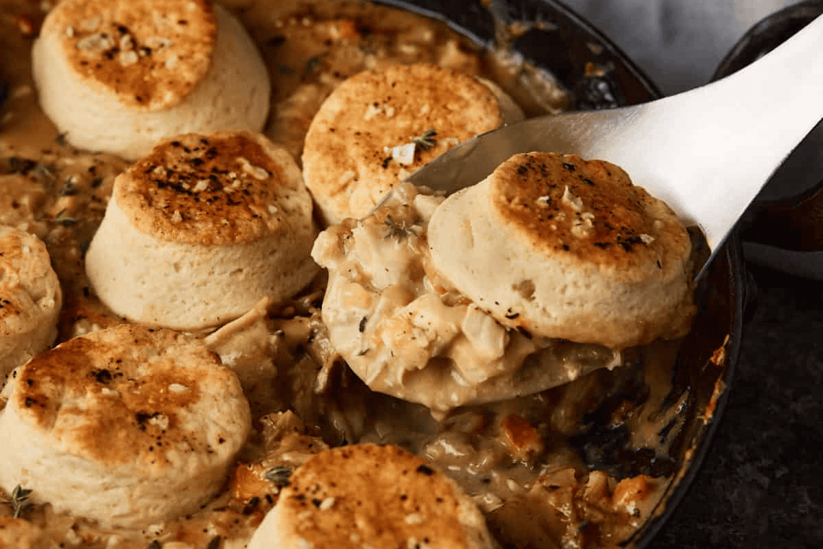 Homemade Chicken and Biscuits is Southern comfort food at its best. This recipe combines a creamy, hearty filling with tender buttery biscuits for the best pot pie you’ve ever had.
