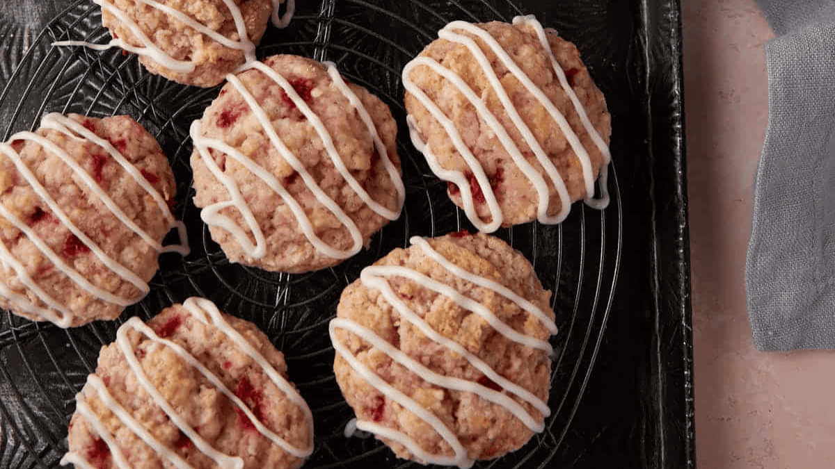Glazed Strawberry Shortcake Cookies are perfectly sweet. With a pop of strawberry, they’re even better with glaze drizzled on top.