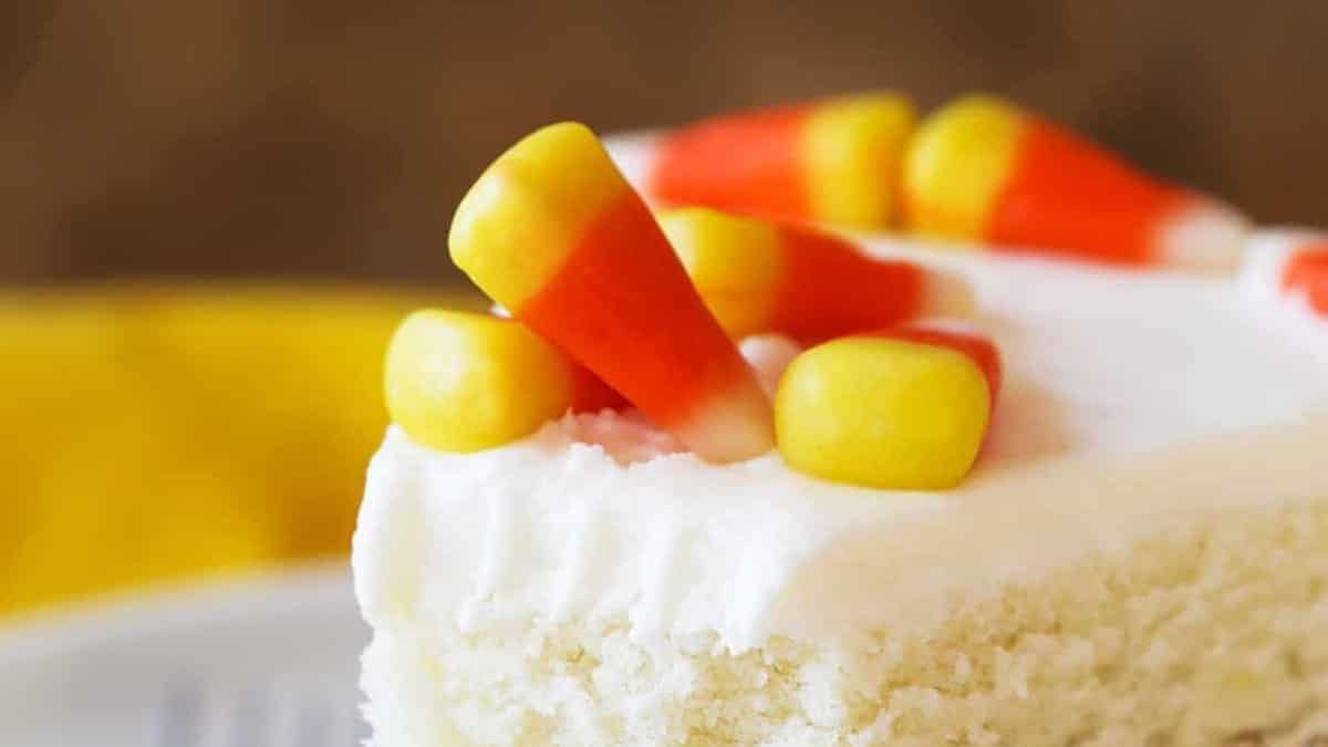 Celebrate fall or Halloween with a festive candy corn cake! The flavor and texture will have people swoon when you cut into it.