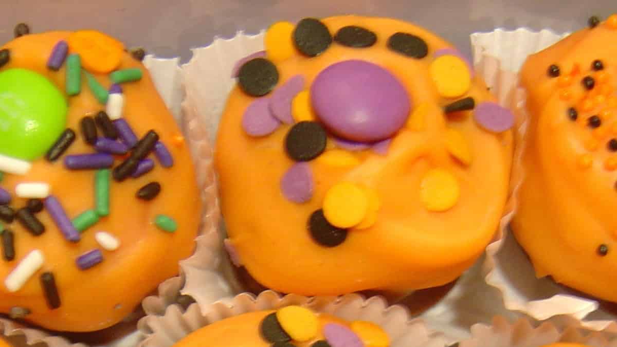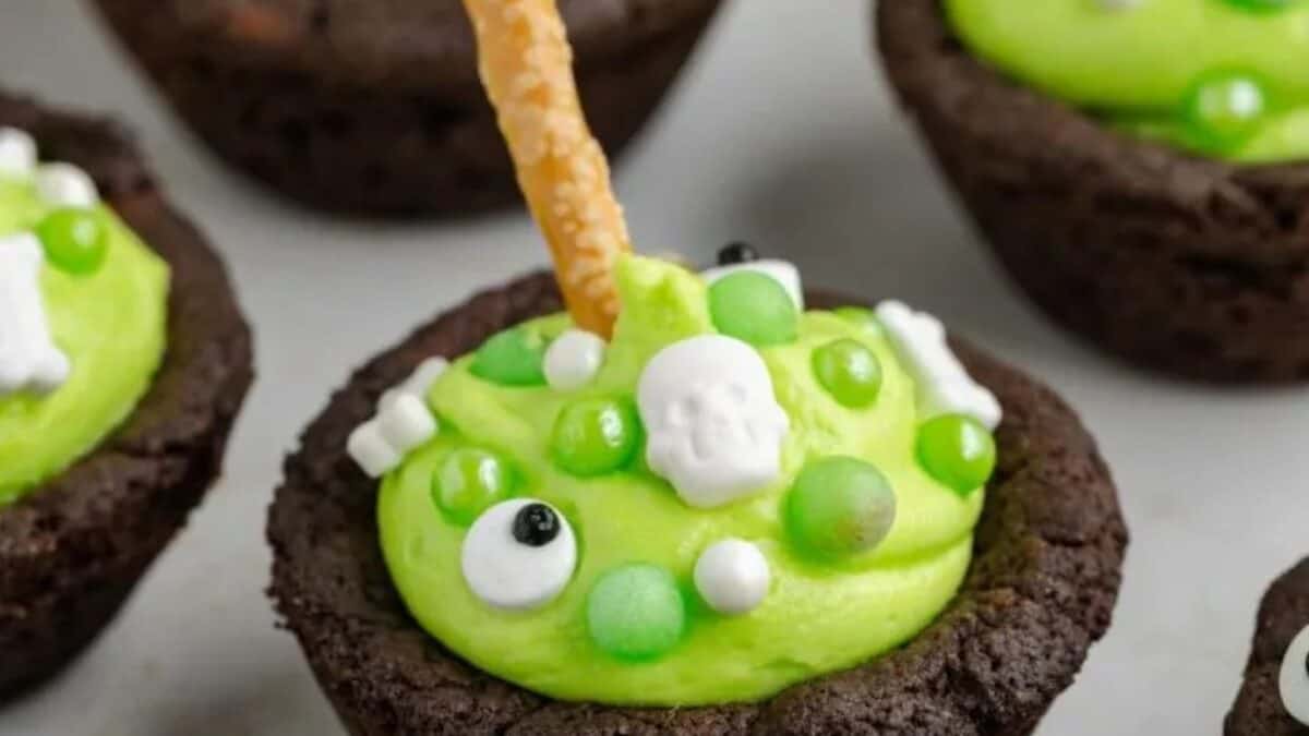 Bite-sized cupcakes topped with colorful frosting and spooky decorations like candy eyeballs or mini bats. Fun, easy, and perfect for Halloween celebrations!