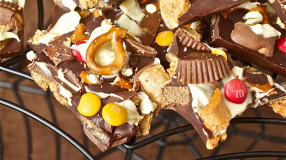 Got a ton of leftover candy from Halloween? Use it to make this Halloween candy bark! It’s personalized bark topped with whatever candy you want and a salty punch of peanuts or pretzels.