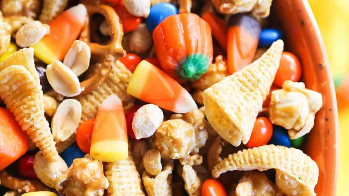A sweet and salty snack mix made with popcorn, candy corn, pretzels, and your favorite Halloween treats. Perfect for spooky movie nights or parties!