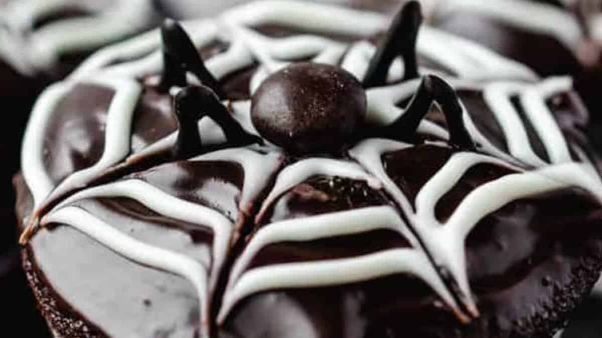 These Halloween Spider Cupcakes are chocolate cake topped with chocolate ganache and the simplest of spider webs and a cute little candy spider.