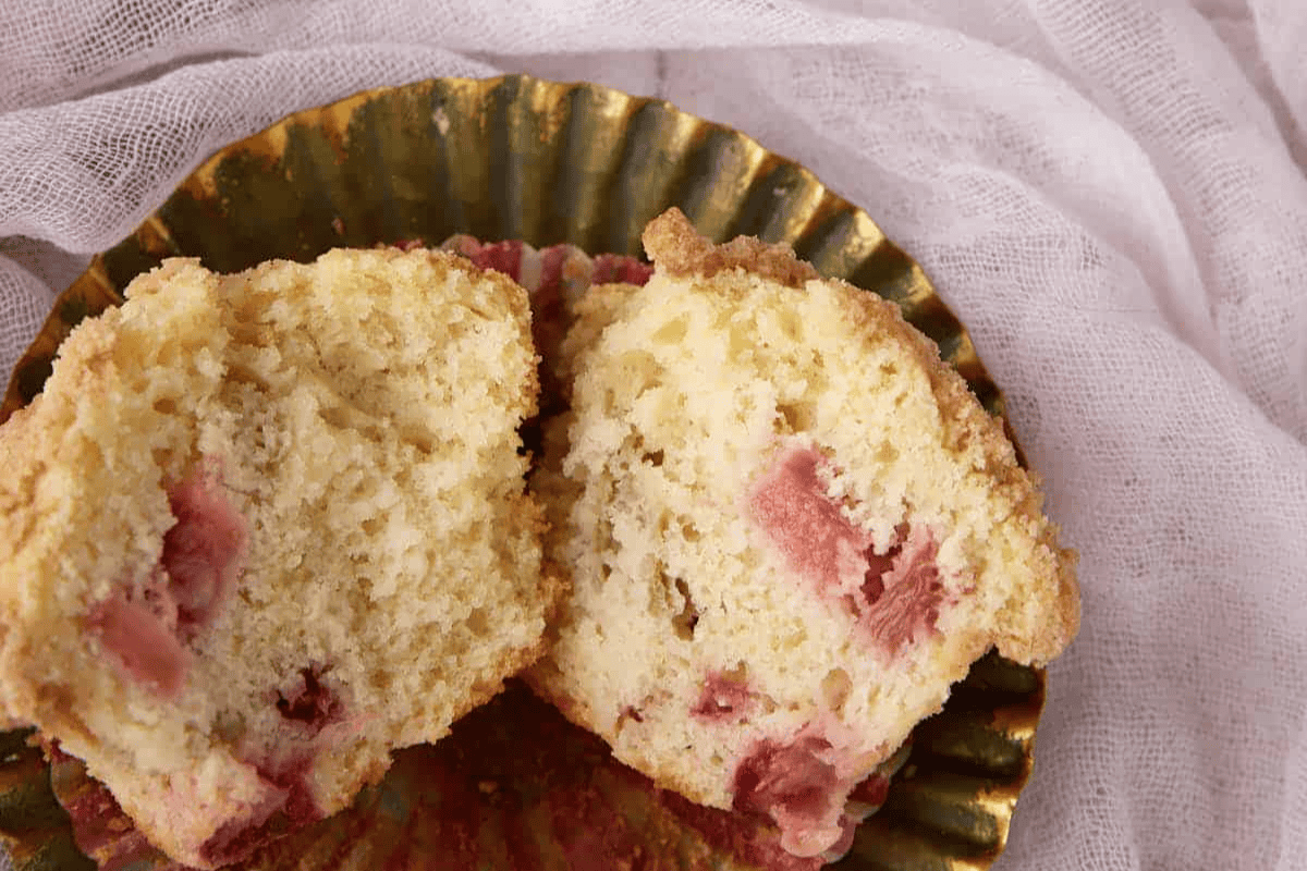 Streusel Topped Strawberry Rhubarb Muffins