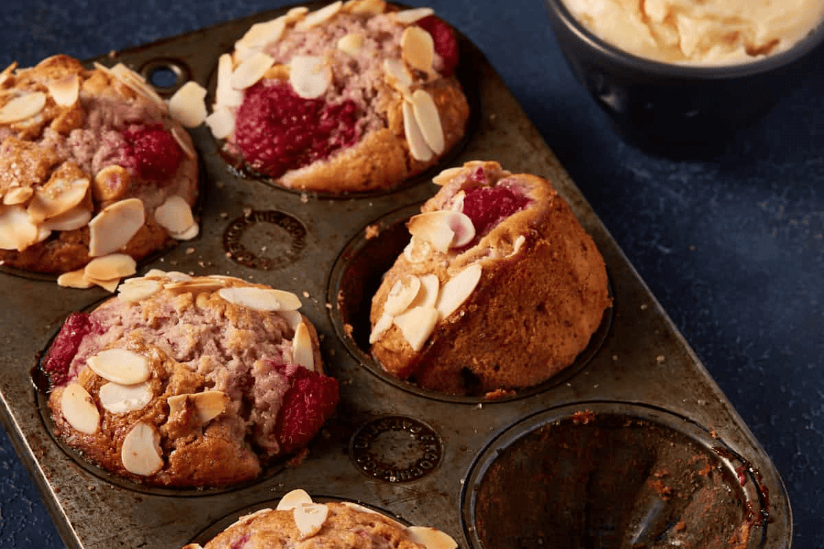 Raspberry White Chocolate Muffins stuffed with fresh, juicy berries and white chocolate chips will be your new favorite breakfast. Topped with crunchy almonds and coarse sugar, they are perfect anytime you’re craving a sweet treat.