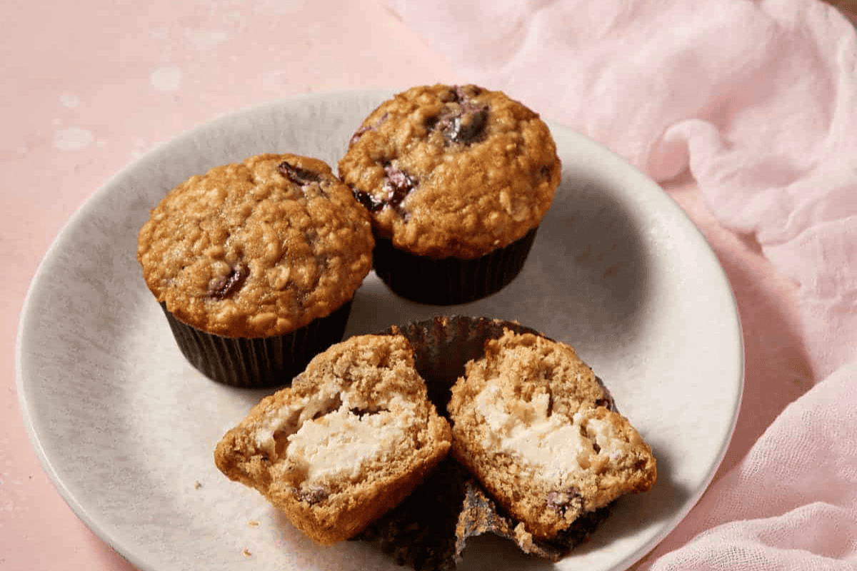Fresh Cherry Muffins filled with cream cheese are the BEST muffins for breakfast or brunch. There’s a cheesecake filling surrounded by a scrumptious oatmeal cherry muffin.