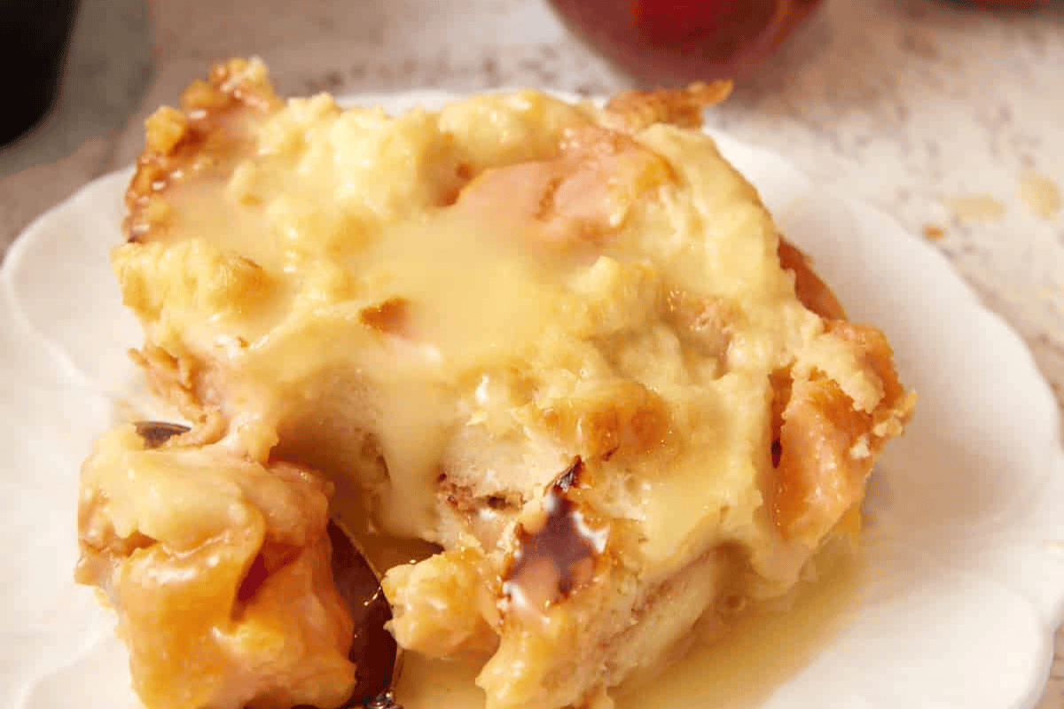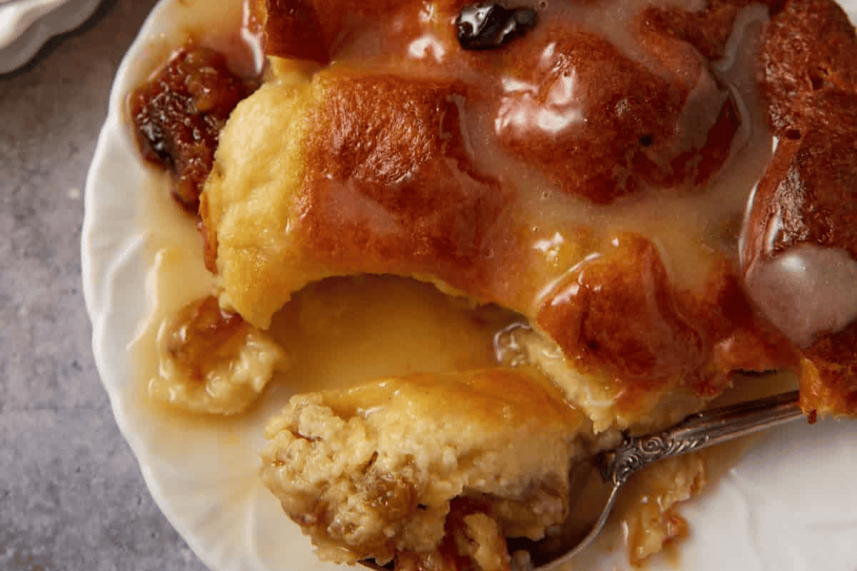 Indulge in the classic comfort of bread pudding, a rich and creamy baked dessert made with chunks of stale bread soaked in a sweet custard.