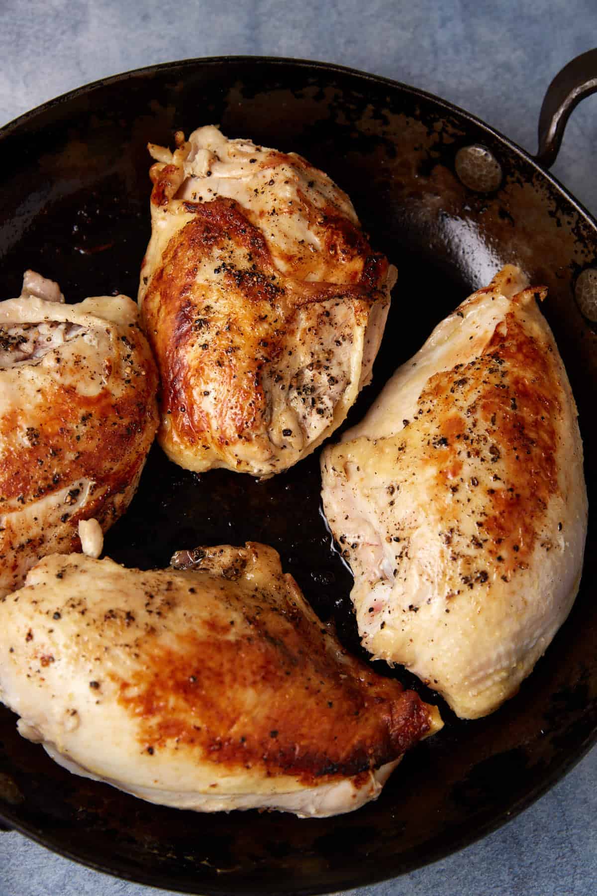- Use paper towels: Pat the chicken dry before searing to remove excess moisture, or the chicken may steam instead of sear.