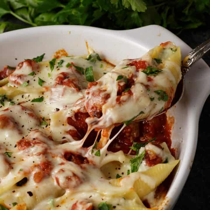 Stuffed Shells with Spinach and Ricotta in Meat Sauce