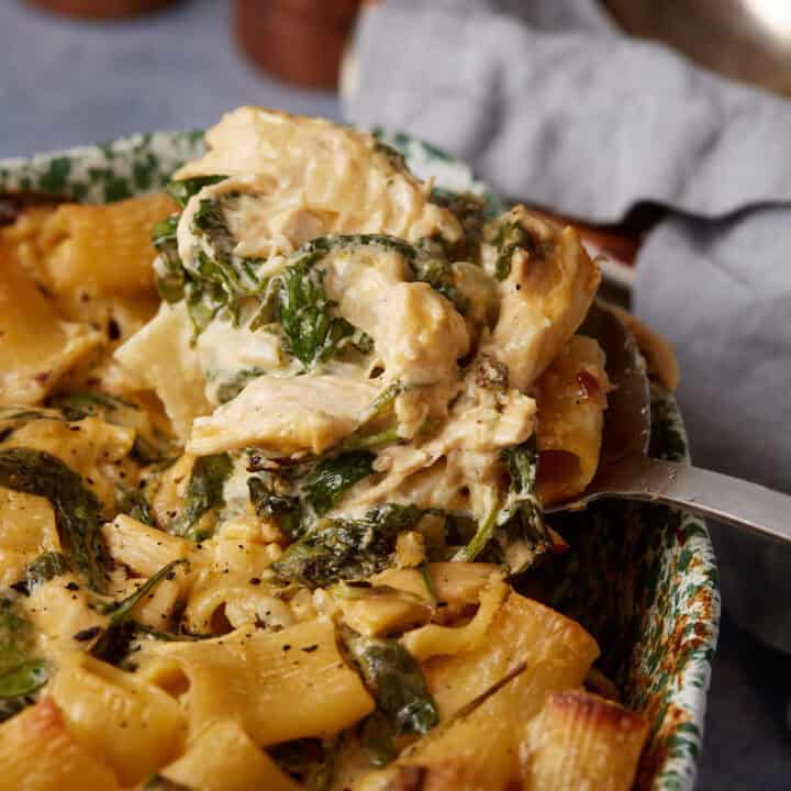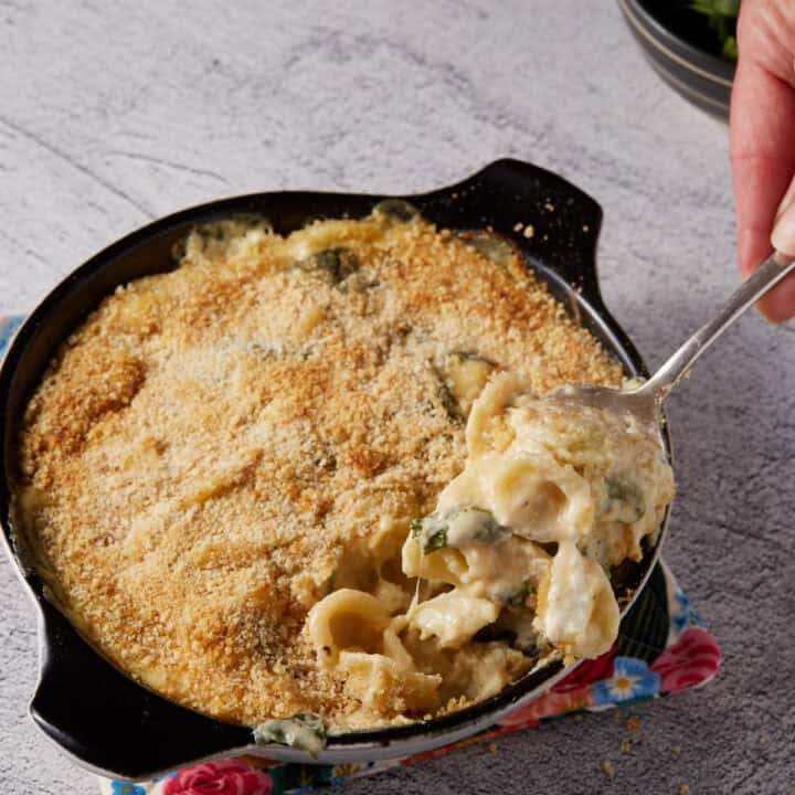 Cheesy Spinach and Chicken Mac and Cheese Casserole