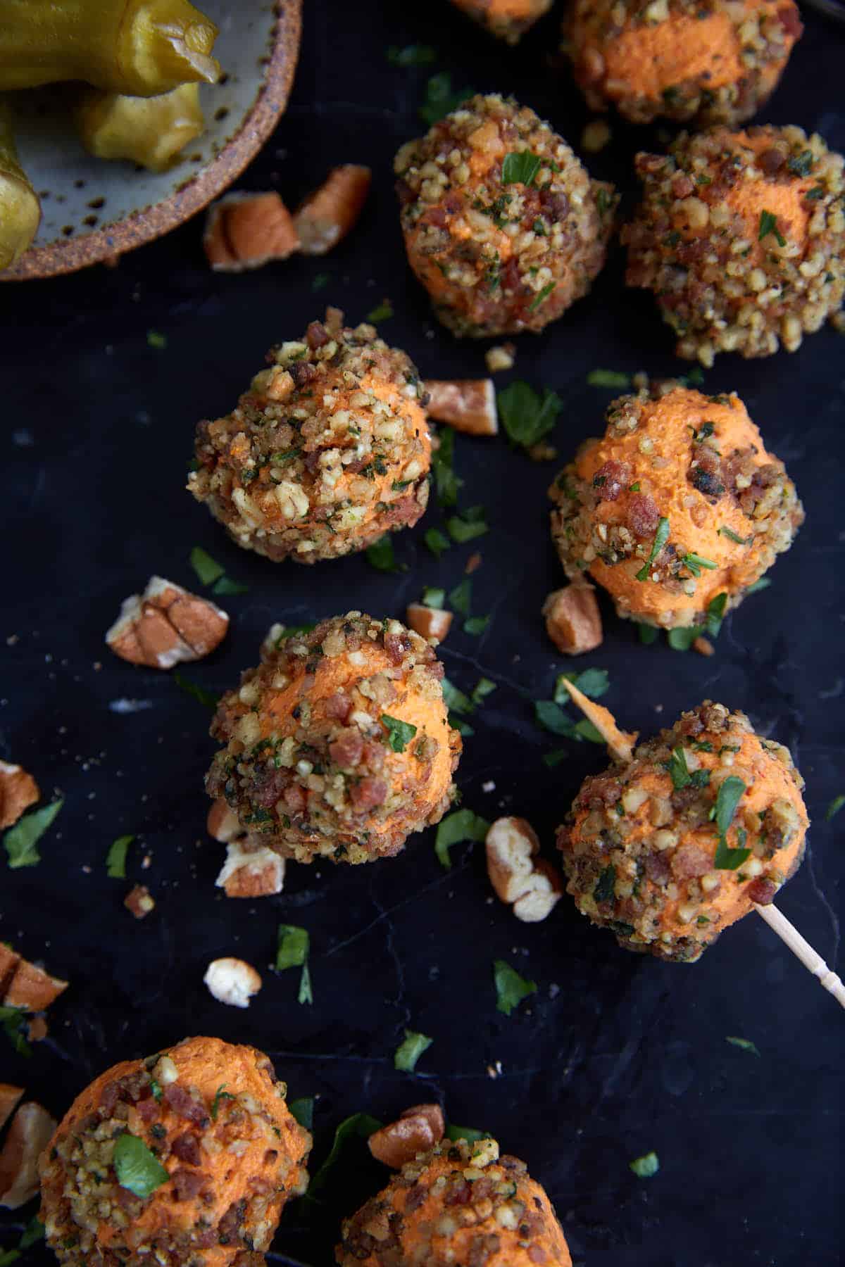 Mini Pimento Cheese Balls with Bacon and Pecans