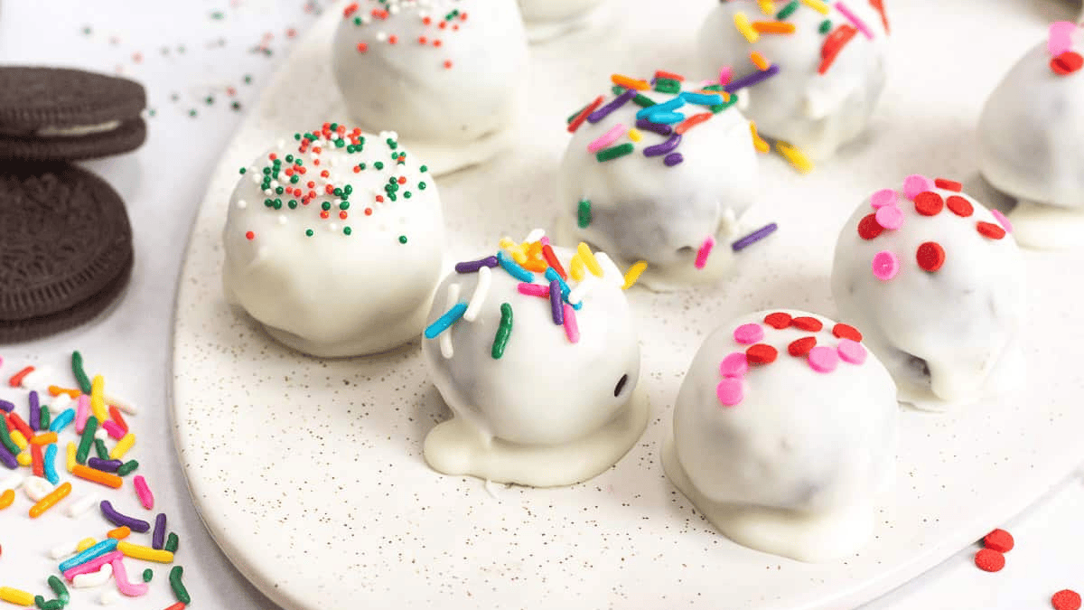 3 Ingredient Oreo Balls are an easy no-bake dessert! Perfect for the holidays or any time of year. Decorate with sprinkles!