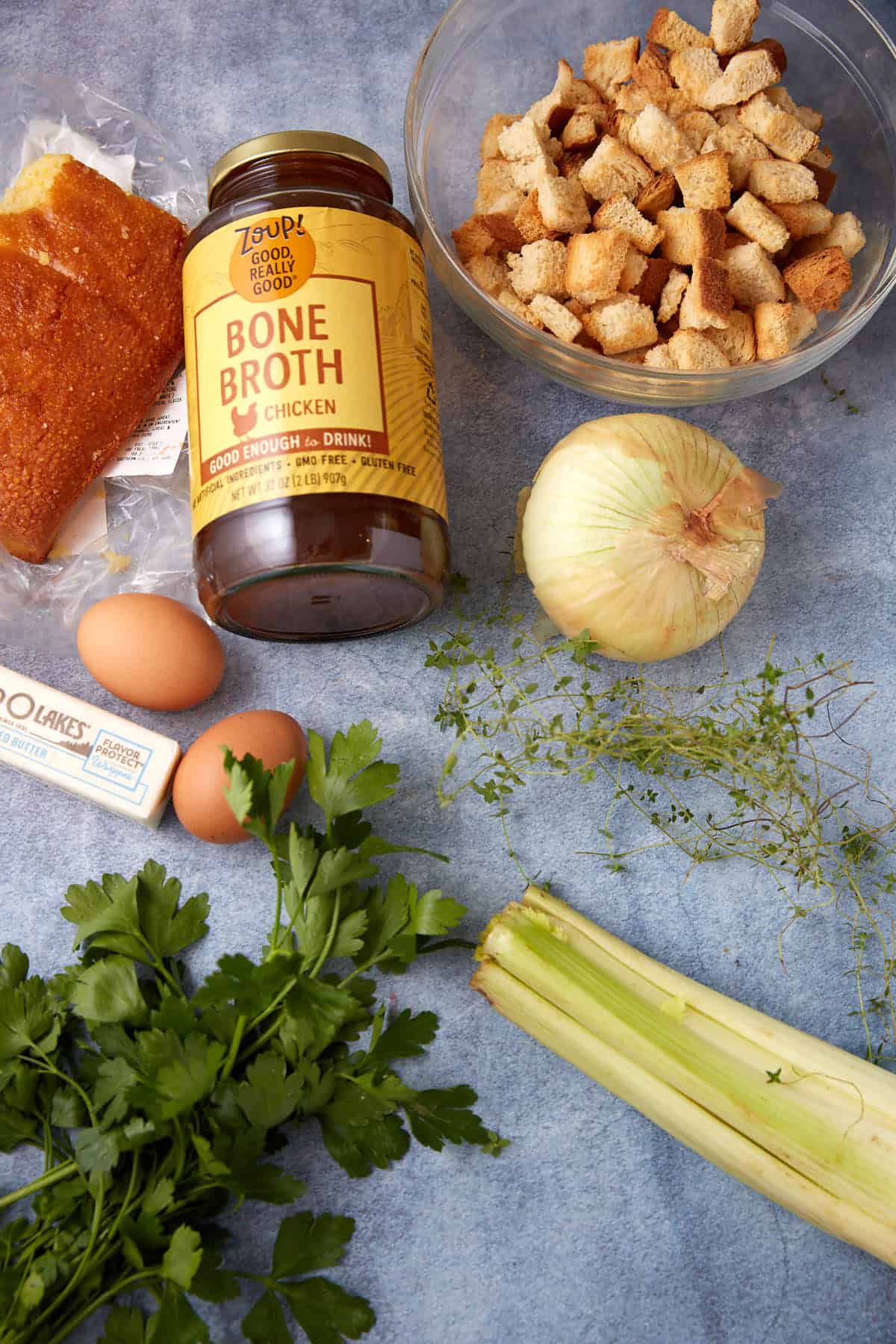 My mother-in-law always used leftover cornbread, but I’ll tell you a shortcut, grab a pan of store-bought cornbread or even a pack of muffins. The little touch of sweetness balances the herbs beautifully, and it saves time on a busy holiday.