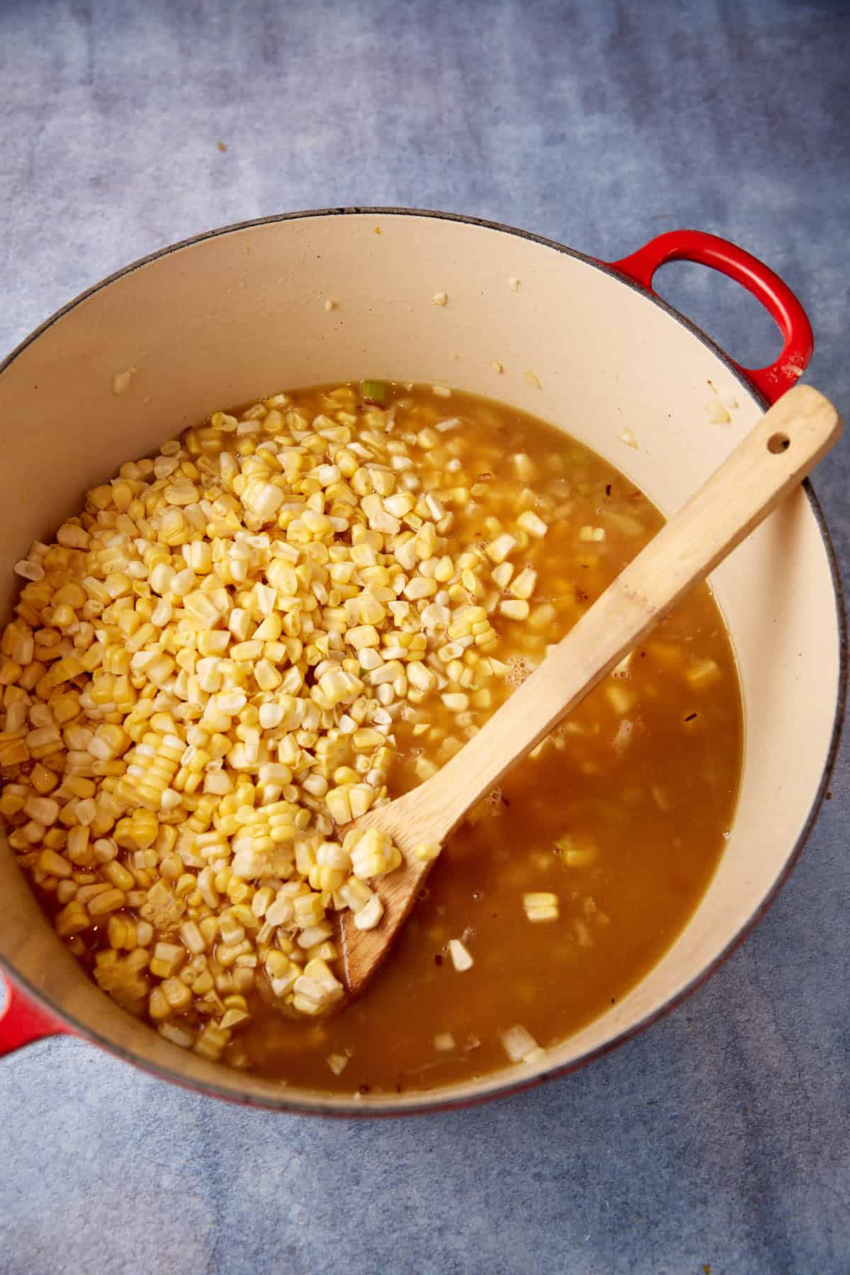 Step Three: Add the Broth and Corn