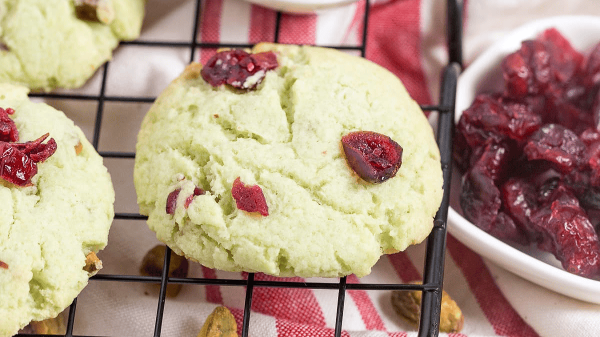 Pudding mix Pistachio Cookies Recipe makes soft, chewy cookies, with bits of crunchy pistachios, sweet dried cranberries, & a hint of almond.