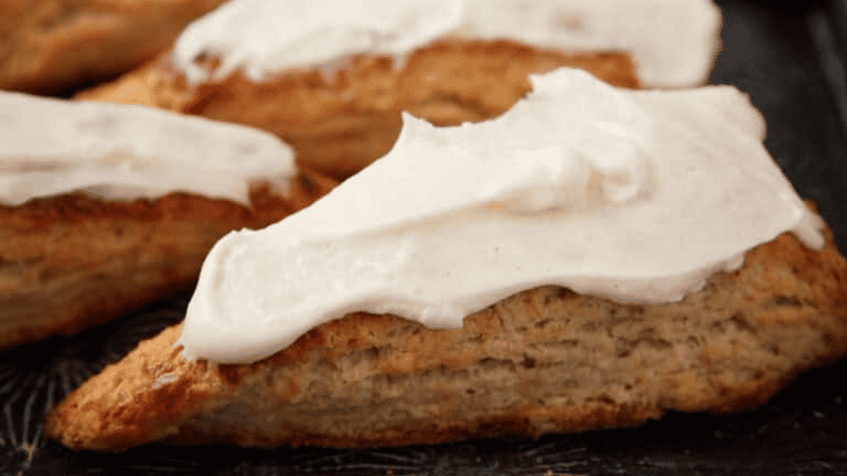 Light And Flaky Banana Nut Scones With Cream Cheese Frosting