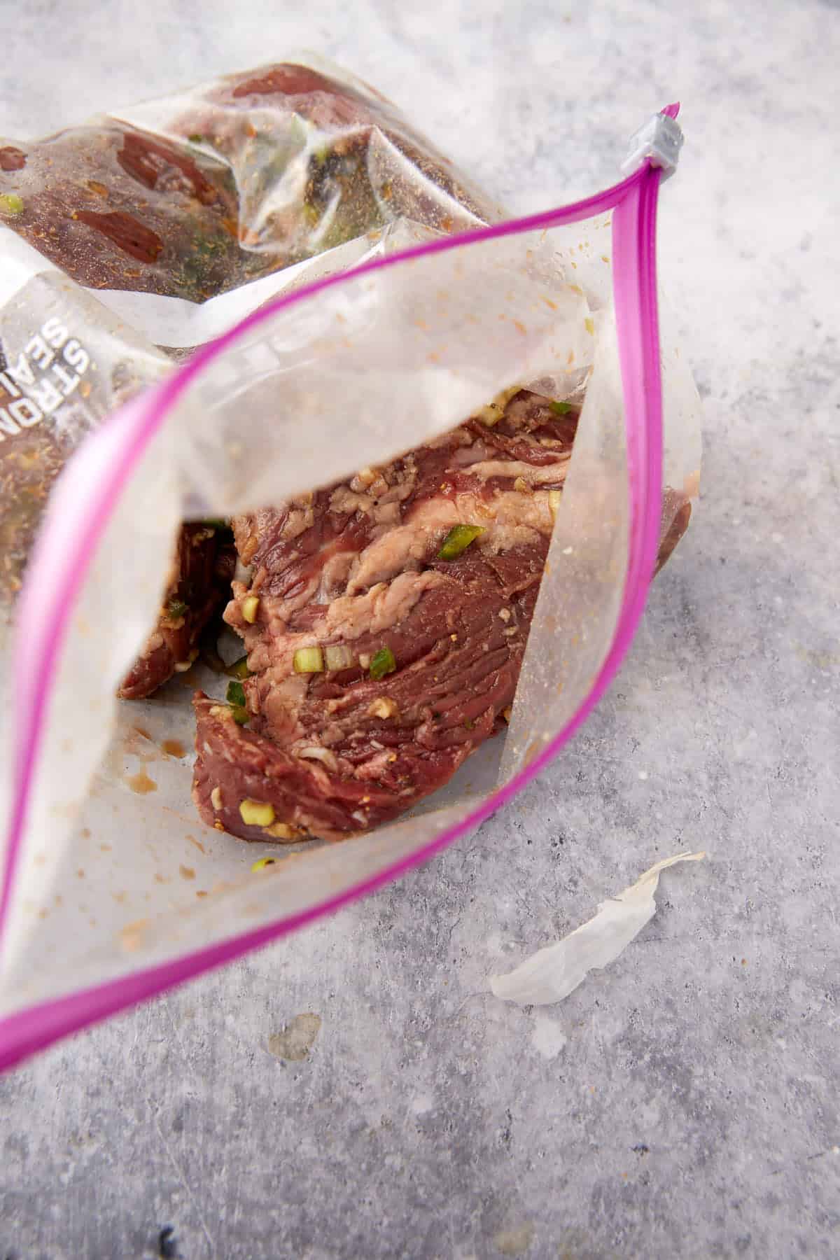 - Place steak in a ziplock bag and pour marinade over the steak. Refrigerate for at least 3 hours or overnight.