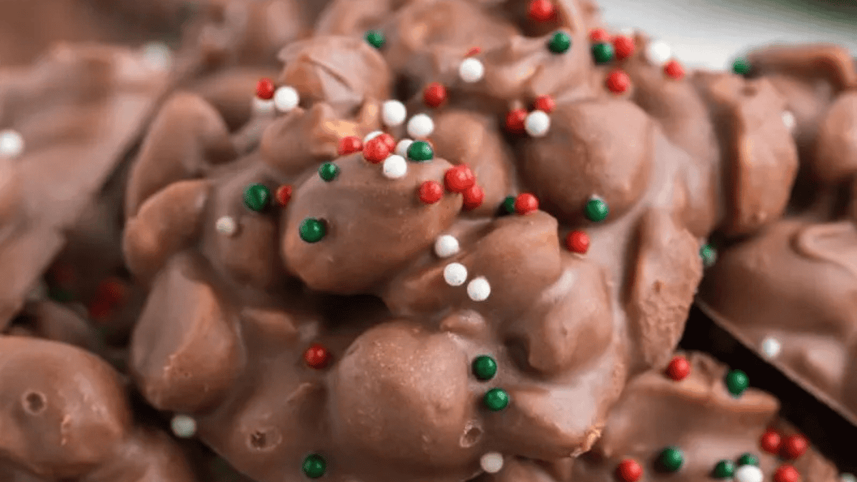 These easy Crockpot Candy Clusters blend salted peanuts, white almond bark, and semi-sweet chocolate for a delightful homemade treat!