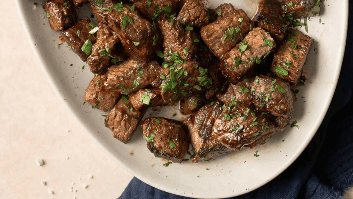 This steak bites appetizer is juicy, perfectly crispy and served with a creamy blue cheese sauce. A perfect party appetizer ready in minutes!