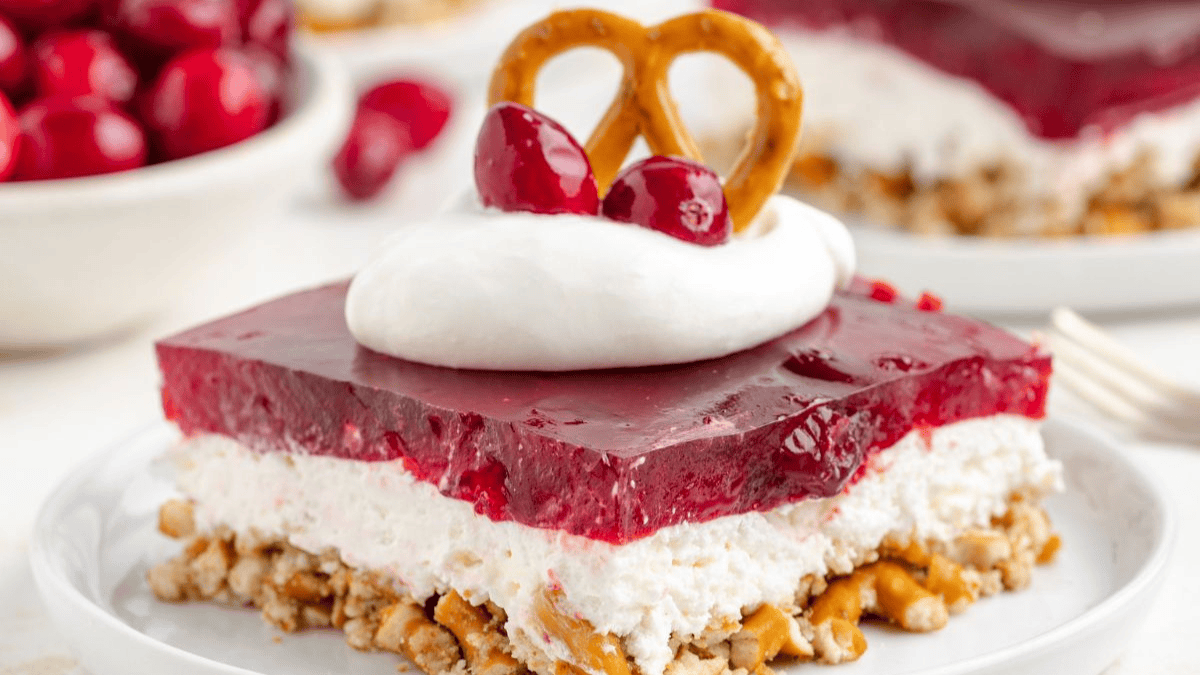 Cranberry Pretzel Salad is a holiday favorite with a salty pretzel crust, creamy filling, and cranberry jello. A perfect make-ahead desserts.