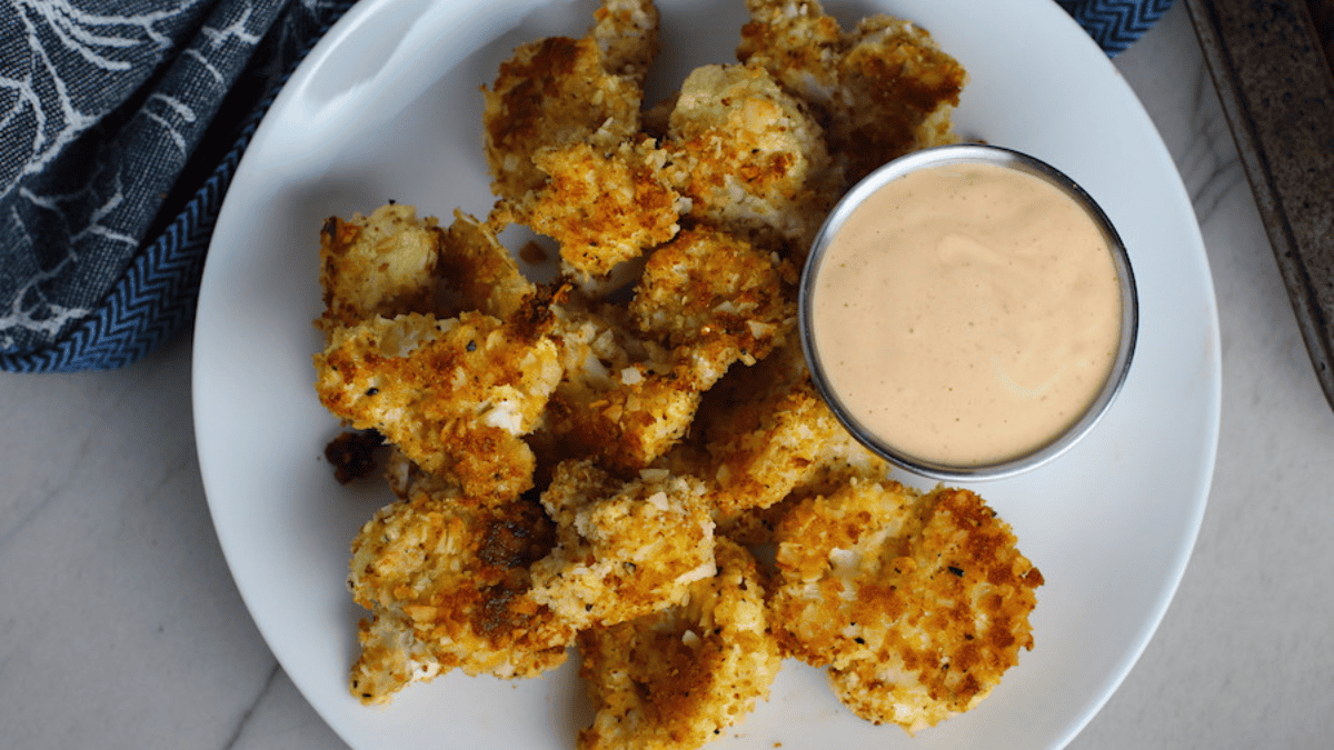 Baked Breaded Cauliflower Recipe With Sriracha Mayo Dipping Sauce