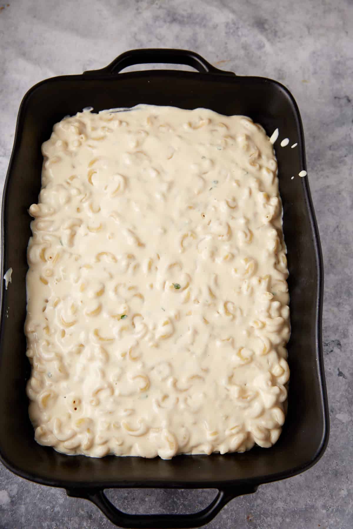 Evaporated milk gives Southern mac and cheese its signature creaminess. It’s thicker than regular milk, which helps create a smoother, silkier sauce that doesn’t separate when it’s cooked. Regular milk can make the sauce watery, and cream can feel too rich. Evaporated milk is just right.