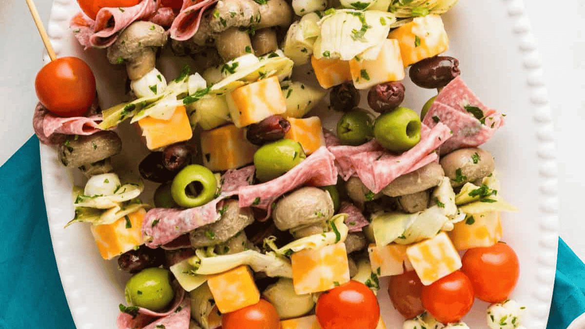 This Antipasto Skewers Appetizer is a delicious treat that is easy to prepare and packed with pieces of Italian meat, cheese, and veggies!