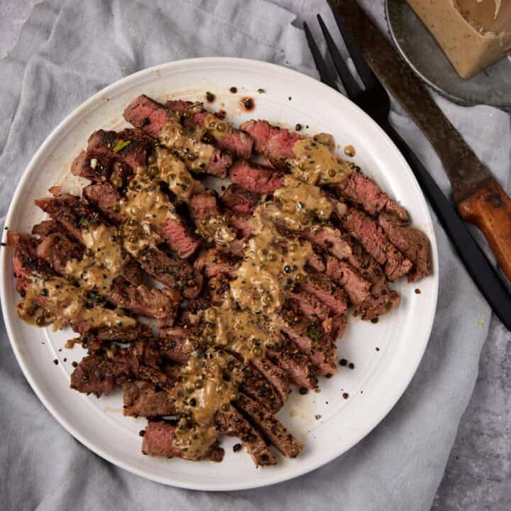 Pan-Seared and Roasted Steak with Creamy Au Poivre Sauce
