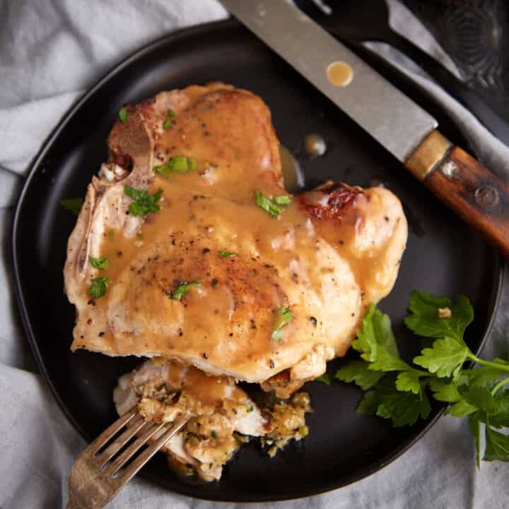 Juicy and Tender Stuffed Pork Chops with Herbed Stuffing and Gravy