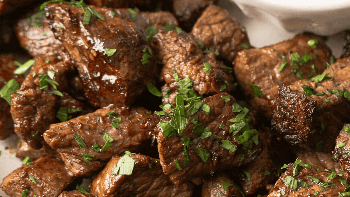 Steak Bites Appetizer With Blue Cheese Sauce
