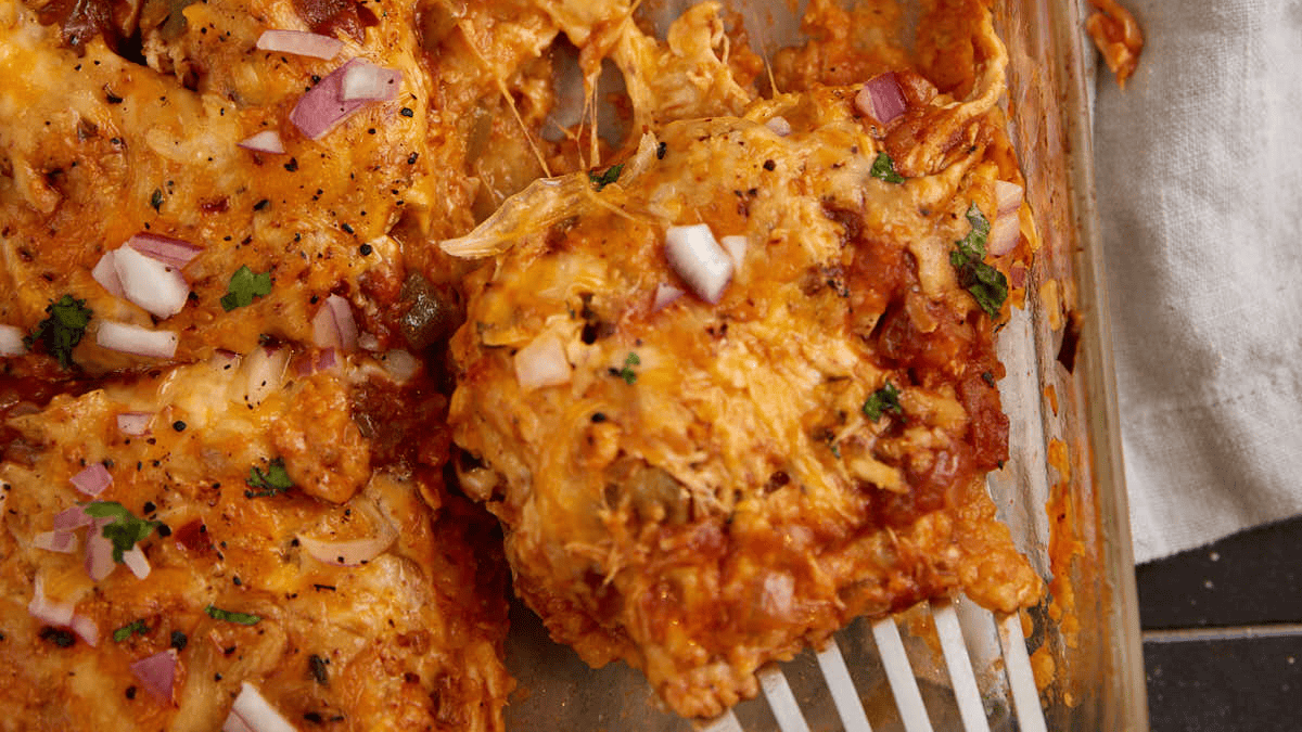 Get the Recipe: Chicken Enchilada Layered Casserole (Easy Homemade Sauce)