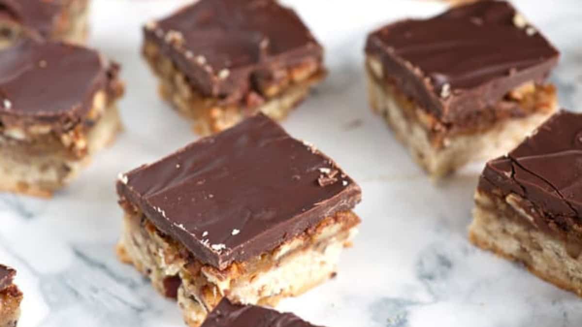 Pecan Pie Bars are a simple dessert that has stood the test of time. With a buttery cookie crust and chocolate topping, you’ll never need to make pecan pie again.
