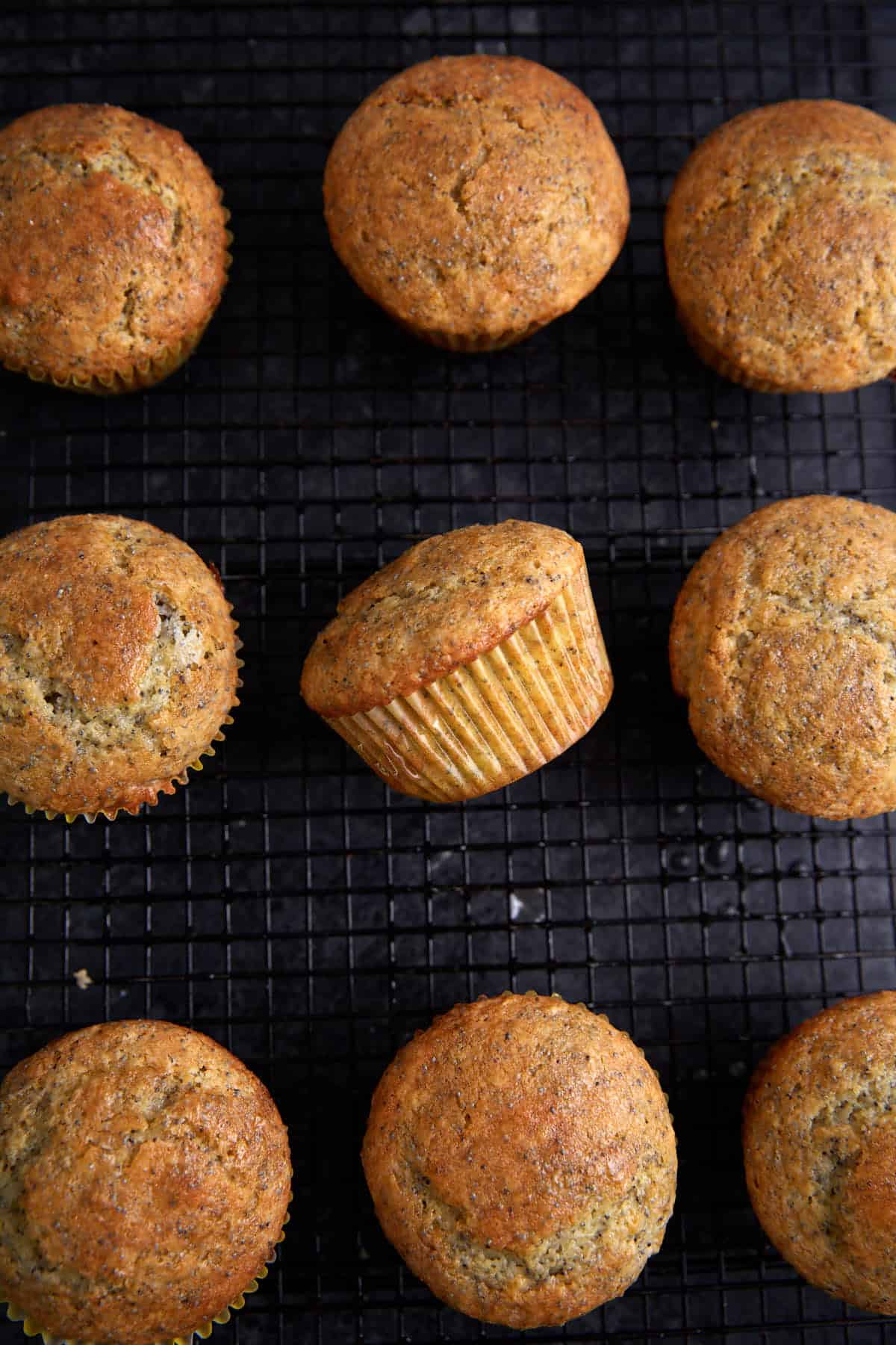 While they might look similar, they are quite different! Chia seeds are oval-shaped while poppy seeds are teardrop-shaped and they come from different plants. They also have different flavor profiles—chia seeds have a nuttier taste than poppy seeds which come off as lemony. Chia seeds also absorb liquid which could alter the texture of your muffins, so stick to poppy seeds for these muffins.