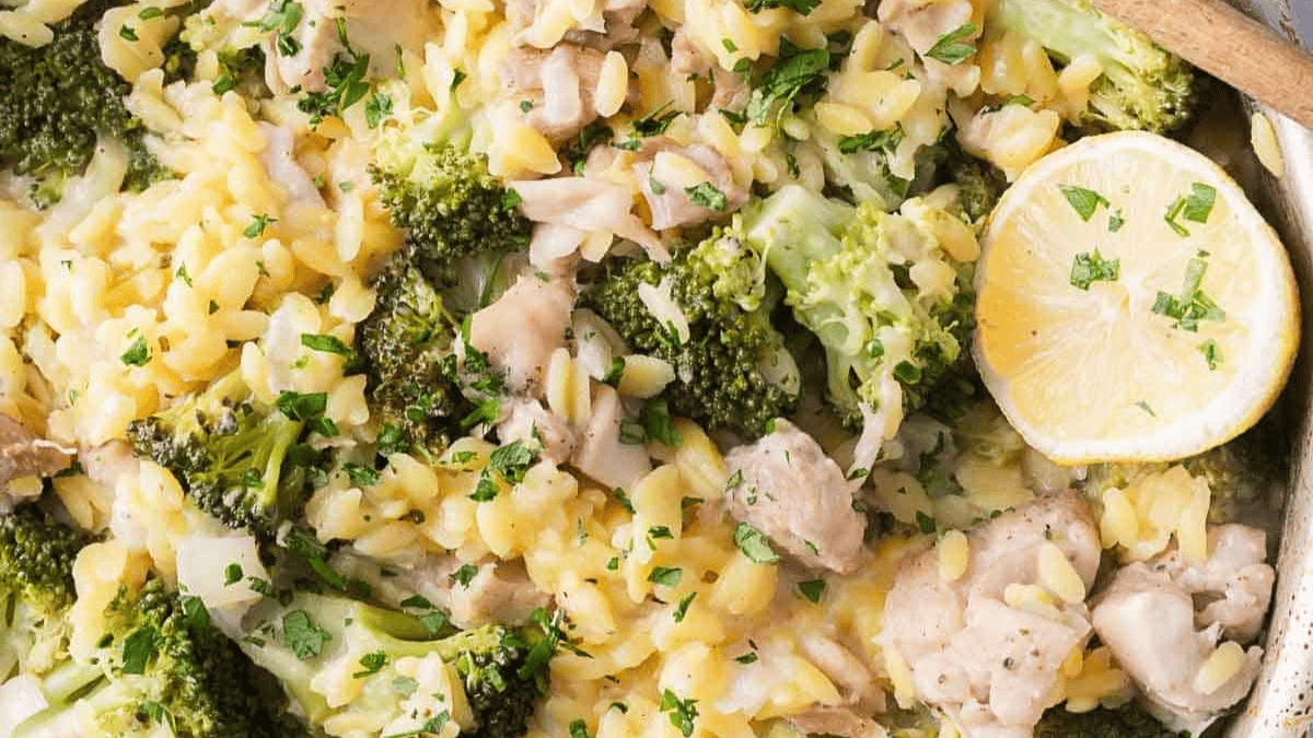 A creamy Chicken Orzo Bake with Boursin! A cheesy one-pan dinner recipe. Tender chicken and orzo unite for an easy weeknight dinner.