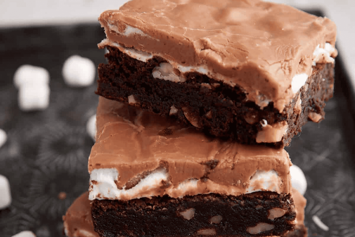 These Mississippi Mud Brownies bring all the best parts of the classic dessert into a handheld form. This fan-favorite recipe has three distinct layers: a rich brownie bottom topped with gooey marshmallows followed by a decadent chocolate frosting. They take just 30 minutes in the oven and then a couple of hours for the remaining layers to set completely.Â