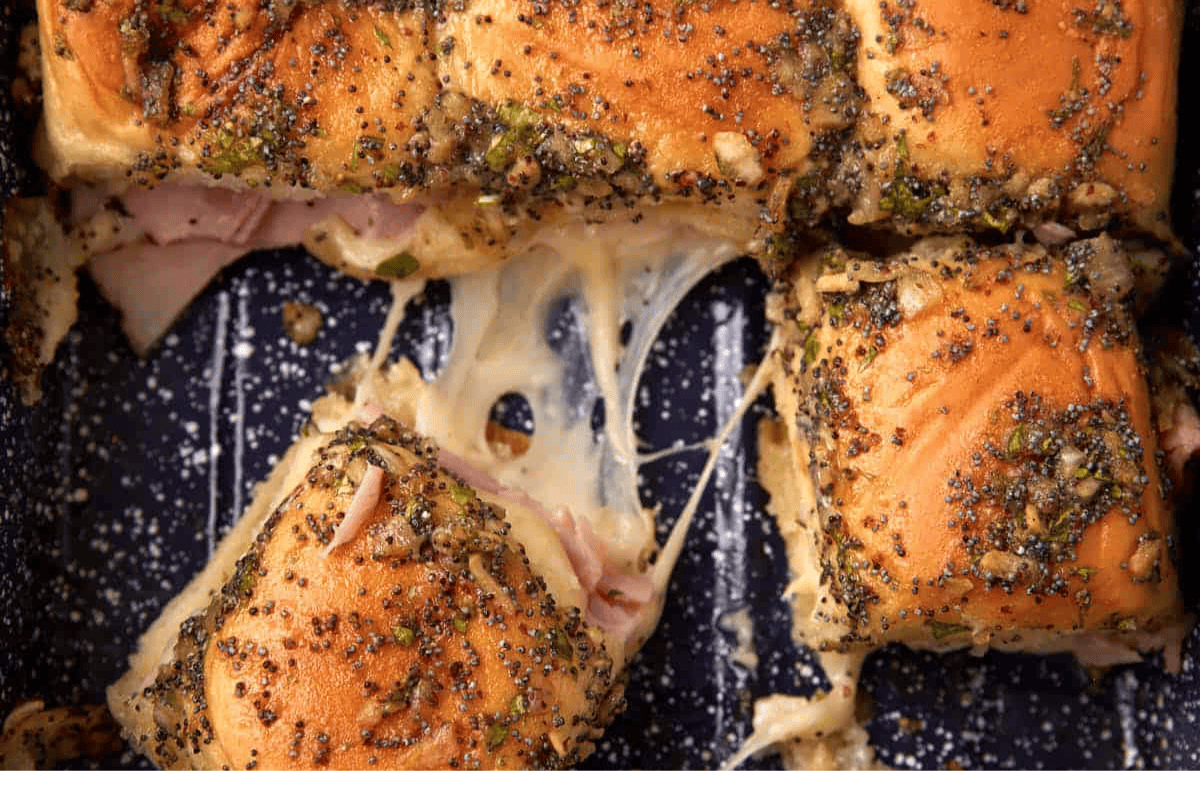Ham and Swiss sliders are ideal for tailgates, game day parties, backyard cookouts– you name it, these sliders are quick, easy and scrumptious. Soft, sweet Hawaiian rolls get filled with layers of savory ham and melted Swiss cheese. With a spread of creamy garlic aioli and a generous brushing of butter on top, these sliders are completely irresistible.