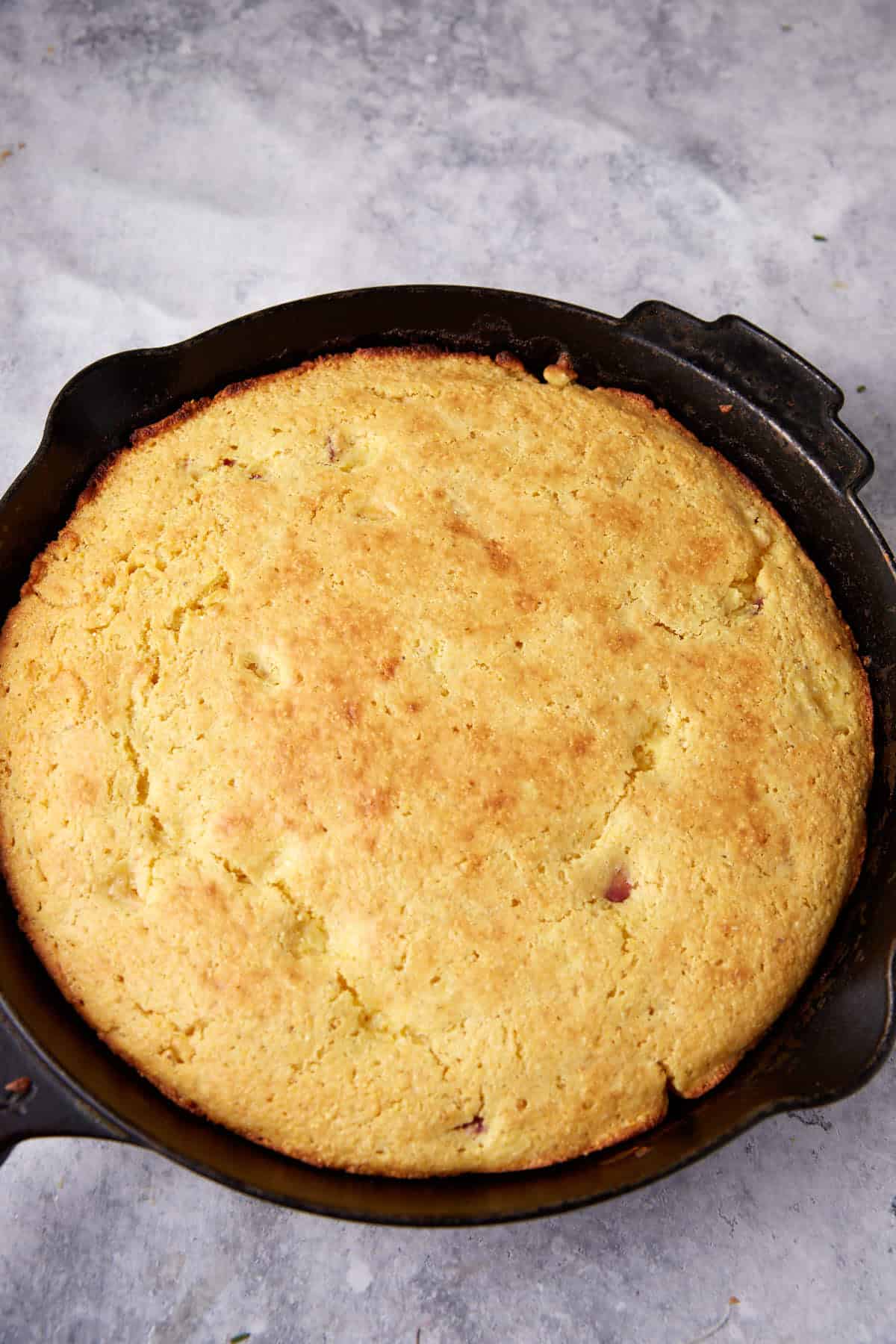 - Don’t over cook, take it out as soon as a toothpick comes out clean, a cast iron skillet will cook this quicker than a baking dish.