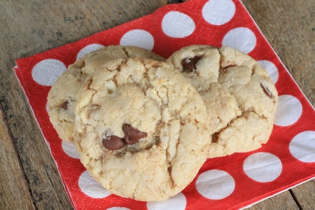 Potato Chip Toffee Chocolate Chip Cookies for a sweet and salty treat. Potato chips give these soft cookie some crunch.