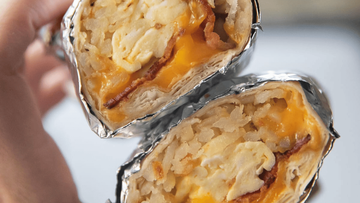 When you want a good hearty breakfast, try these simple to make homemade Breakfast Burritos! Filled with bacon, egg, cheese, and hash browns!