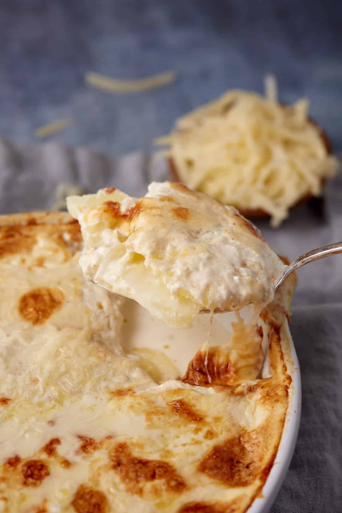 If you want more of a crispy situation, I love these crispy au gratin potatoes with a browned top and cheese tucked into every layer. But if you’re craving something more traditional this is the one.
