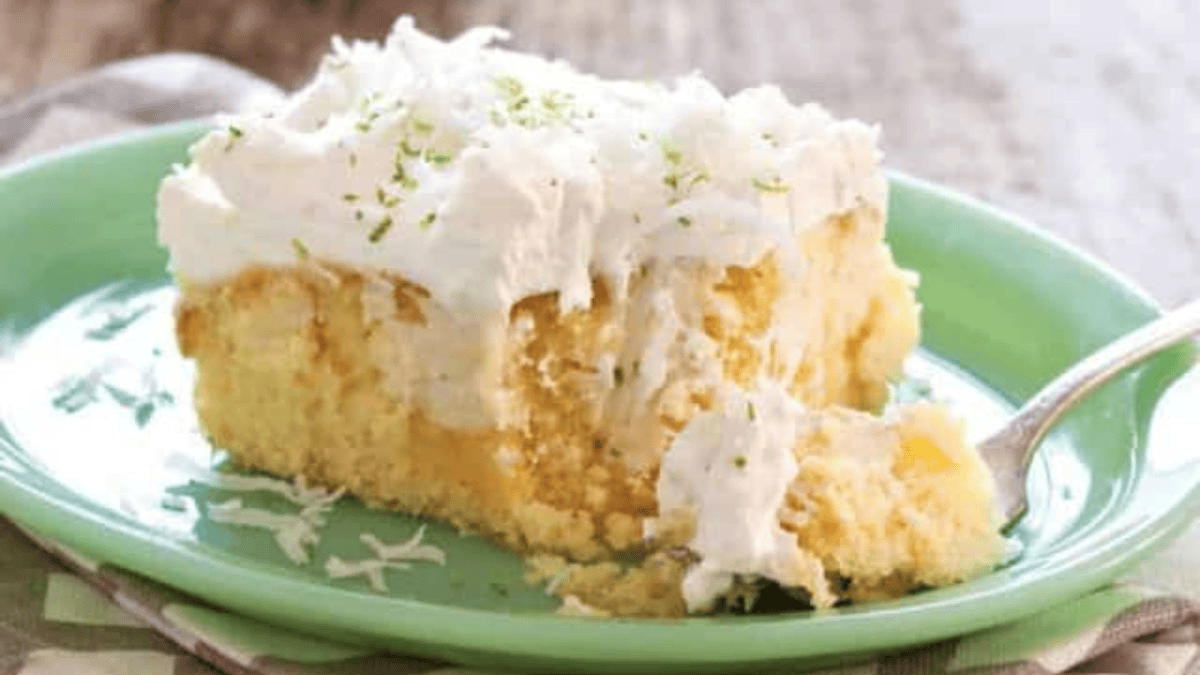 Every bite of key lime coconut sheet cake is infused with sweet and creamy lime and coconut flavoring and a homemade whipped topping.