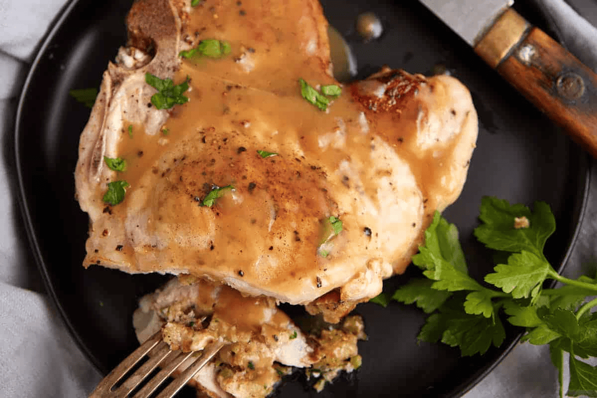 Juicy and Tender Stuffed Pork Chops with Herbed Stuffing