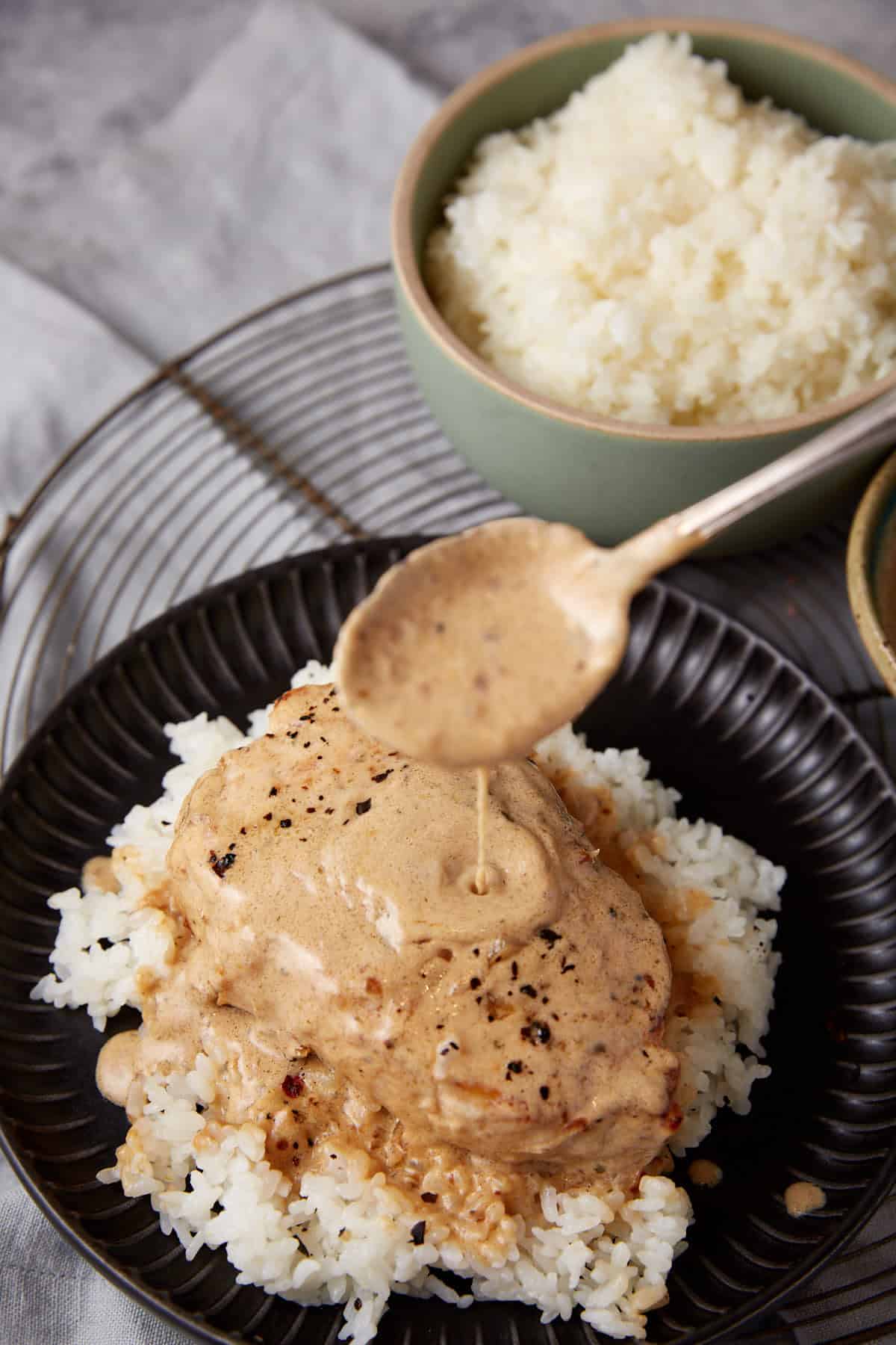 This is the perfect main dish to serve on top of mashed potatoes, rice, or egg noodles to soak up all the gravy. And trust me you don’t want to miss any of the gravy! This gravy recipe is super flavorful but only slightly thick, so I recommend using less chicken stock or broth if you prefer a really thick gravy.