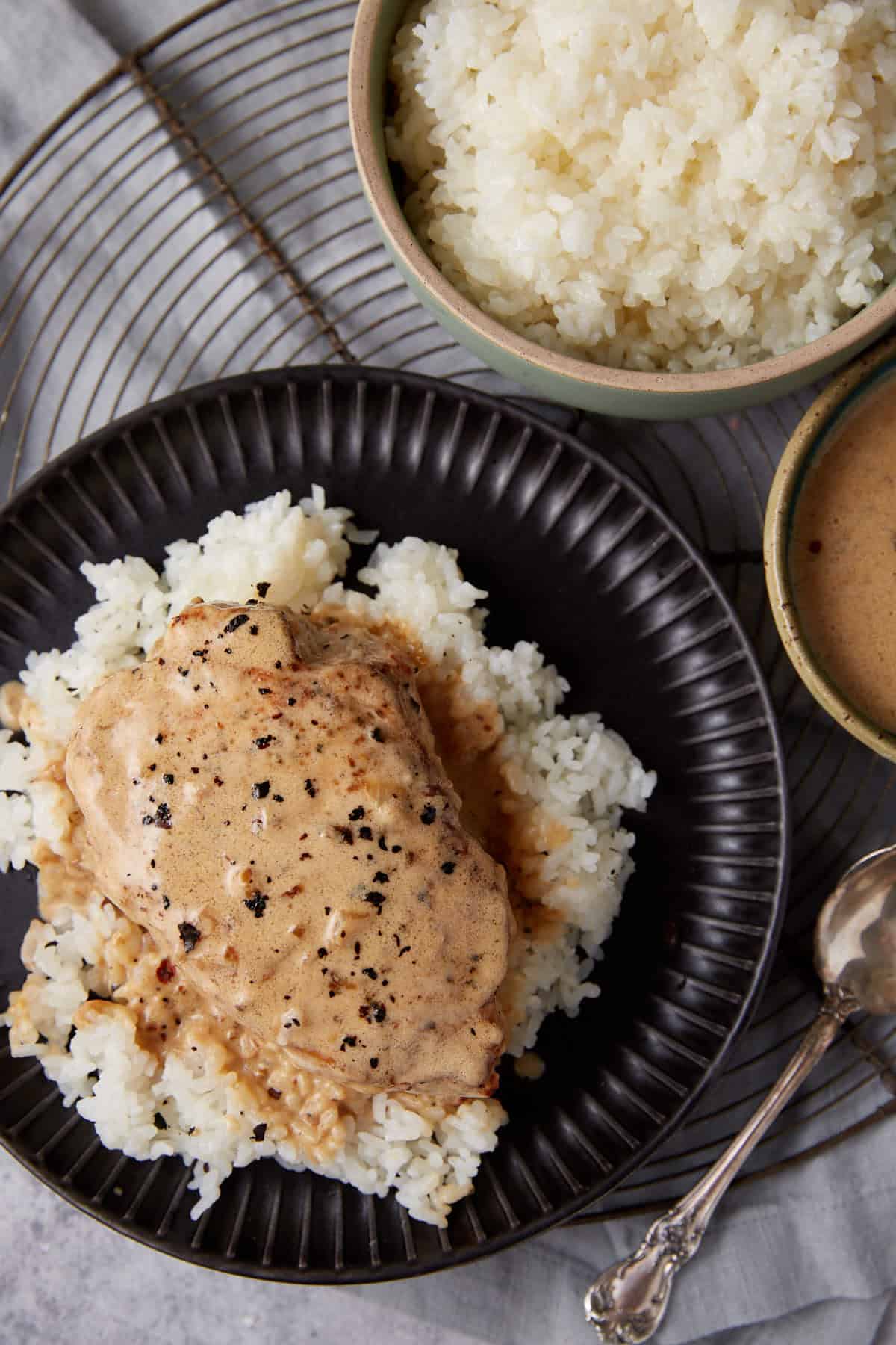 This recipe works best with boneless pork chops which make it easier to serve with the gravy, but bone-in pork chops would be just as amazing. Bone-in chops tend to have more flavor but that bone gets in the way when they’re smothered in gravy.