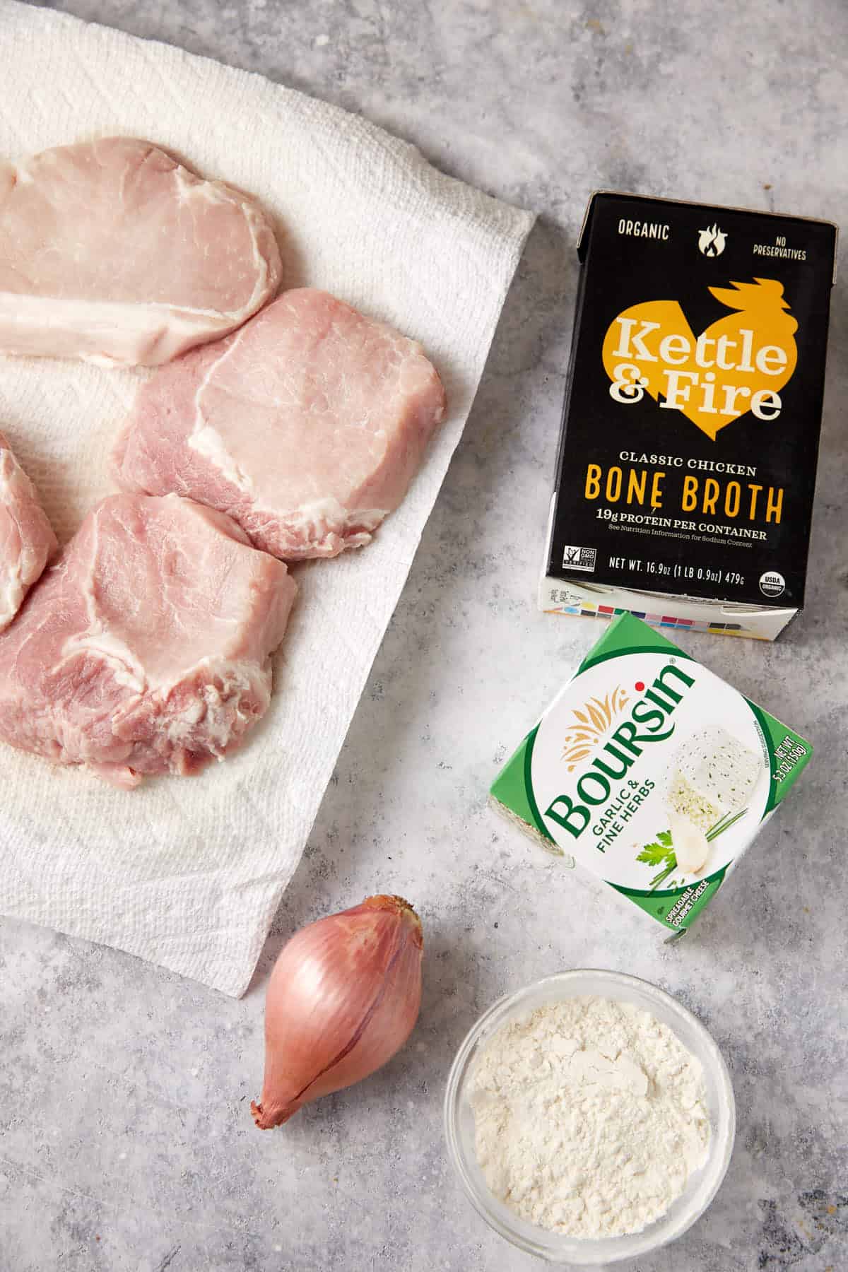 This Southern smothered pork chops recipe gets a fresh take thanks to the addition of Boursin cheese in the gravy. The garlic and herbs of the Boursin infuse this delicious gravy with even more flavor than a traditional mushroom gravy recipe and are definitely the not-so-secret ingredient to making this dish shine.