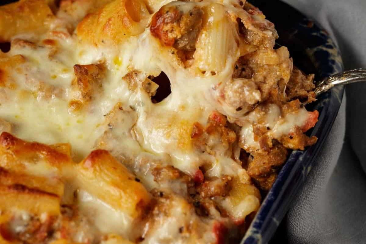 This recipe for baked penne pasta combines homemade vodka sauce, withricotta cheese and crumbled Italian sausage. An easy pasta casserole!